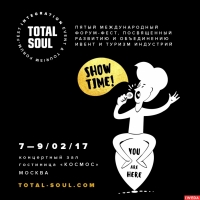 Для специалистов Event & Tourism 7-9 февраля 2017, Москва Концертный Зал «Космос» www.total-soul.com ЧТО ВАС ЖДЁТ? - 30 cпикеров международного уровня с реальными кейсами и новыми технологиями; - 1.000 специалистов Event & Tourism со всего мира; - Возможность презентовать свой товар/услугу и найти...