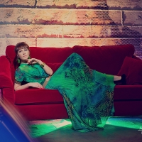 Вторая часть стала неожиданной даже для меня – когда Женя сменила платье на ярко-зеленое. Признаюсь, с эффектными фильтрами я работаю редко (даже во время моей службы на кино-съемочной площадке я бралась за них только в том случае, если нужно было оформить светом какой-нибудь бар или ресторан – в обычной жизни яркие подсветки встречаются не часто). У нас был фильтр абсолютно тон в тон платью Жени, и искушение оказалось слишком велико. Зеленый с красным – агрессивное цветовое сочетание, но эти цвета все равно лежат друг напротив друга в цветовом круге – результат впечатлил даже меня саму. Мы добавили еще теплой подсветки за диван для того, чтобы подчеркнуть рельеф стены и отделить диван от фона. Вообще, в творческих поисках мы пребываем во время каждой нашей съемки. Точнее, в этих поисках - с головой мой мастер по свету, а я в это время бешусь и кричу на него, чтобы он не тормозил процесс. Но только его идеи по свету позволяют делать мои фотографии очень продуманными, завершенными еще до обработки. Безусловно, цветокоррекция и ретушь – важная часть для каждой фотографии, но у меня всегда было правило: исходник должен приближаться к идеалу.